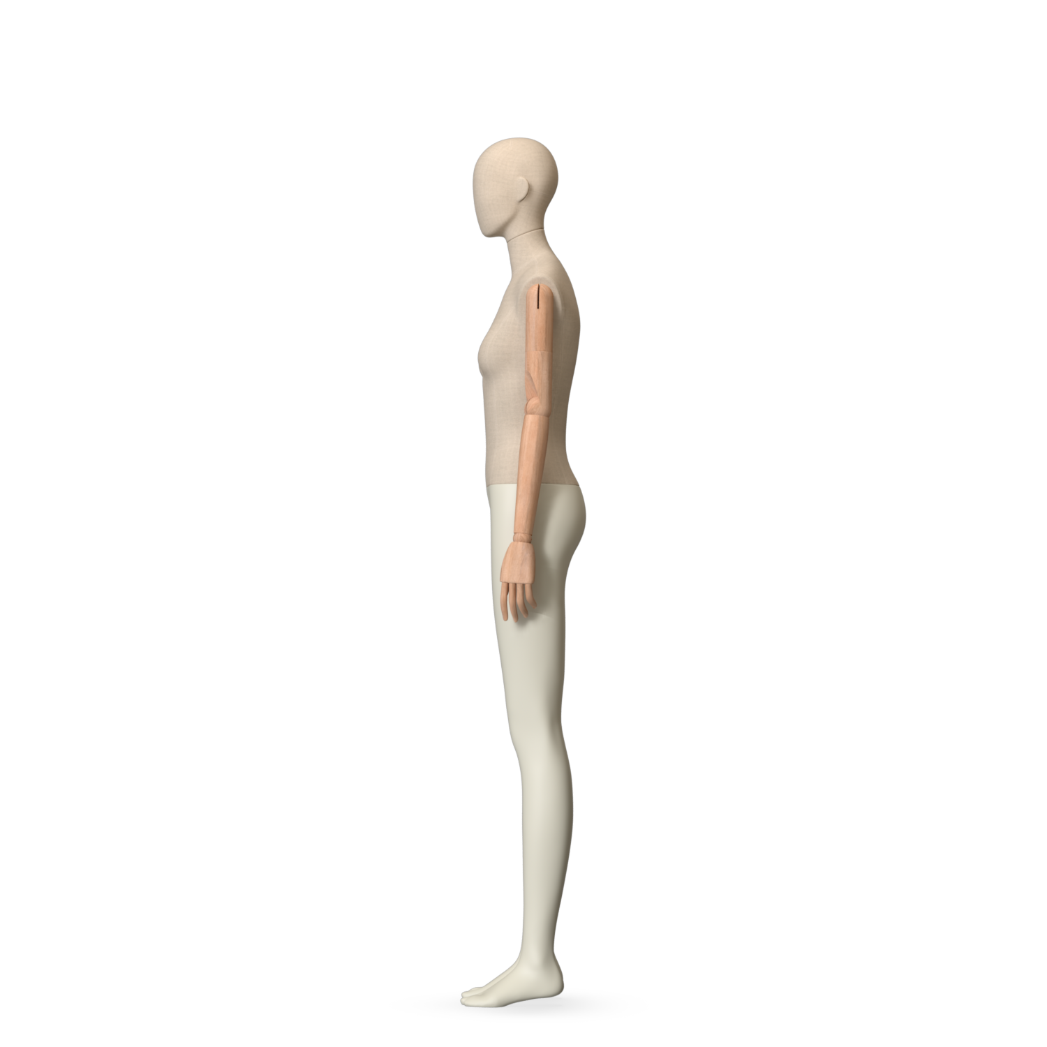 The Female Canvas Articulated has a body with Amjf 643 Canvas Linnen,Pantone 9225C matte legs and Natural Wood articulated arms with Non-Art fingers.