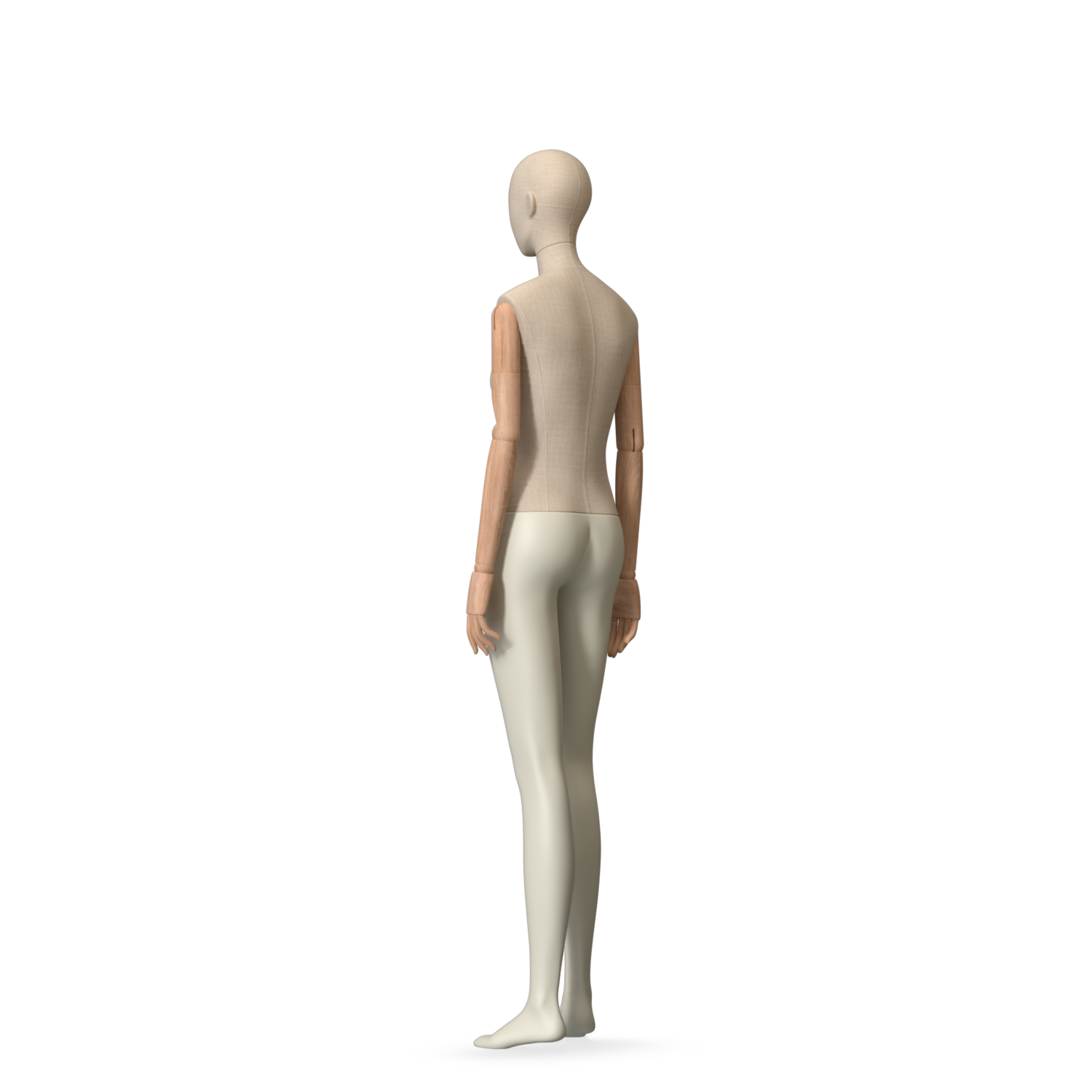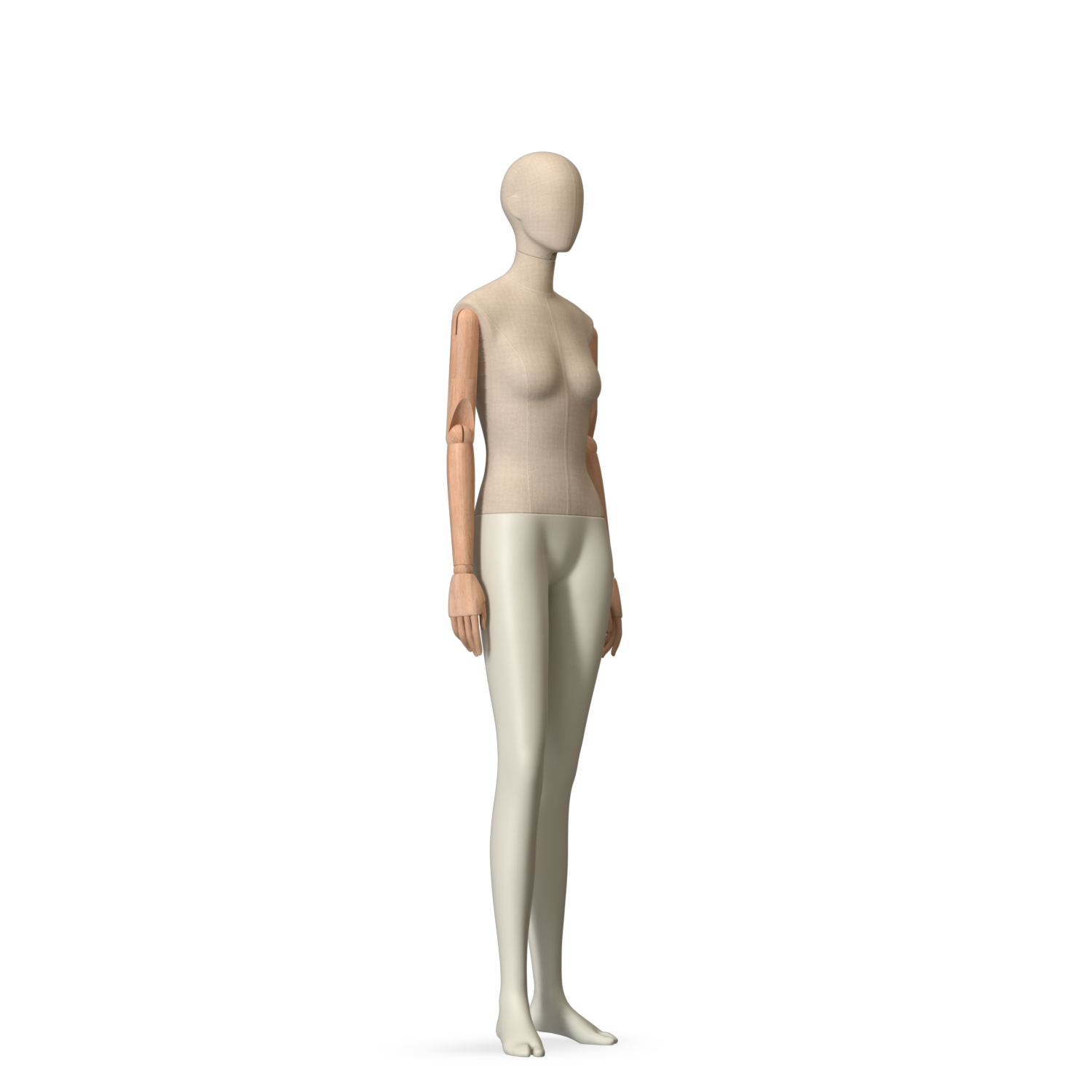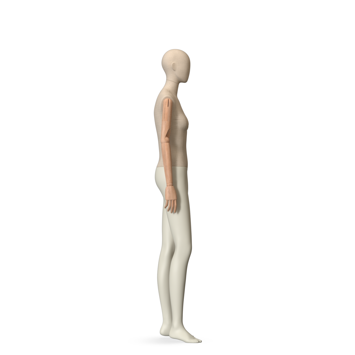 The Female Canvas Articulated has a body with Amjf 643 Canvas Linnen,Pantone 9225C matte legs and Natural Wood articulated arms with Non-Art fingers.